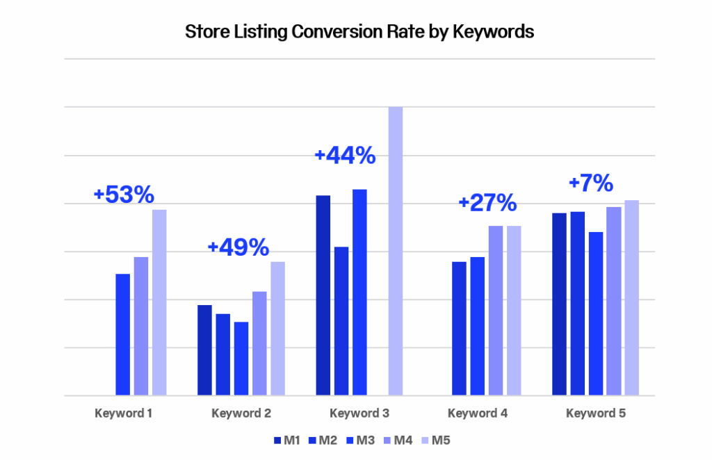 The results support the hypothesis that creating bespoke Custom Store Listings tailored to specific keywords will drive greater visibility and conversions on the corresponding keywords.